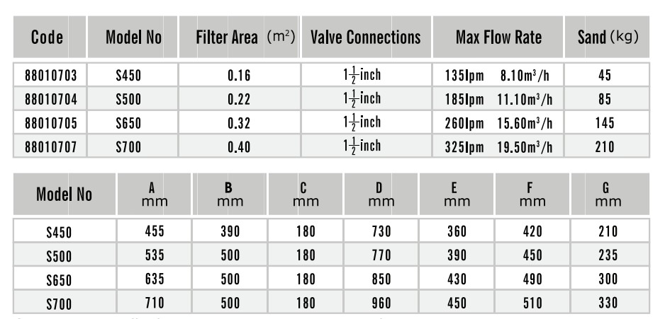 菲臣Fussen系列S系列沙缸采用排氣螺栓,可釋放被困在沙缸內的空氣。它用的材料適用于所有氣候環境,防紫外線的表面,使過濾器可在陽光直射下操作#制成的玻璃纖維和聚酯