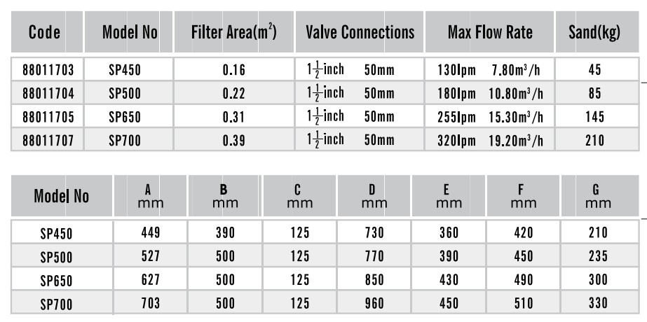 SP的系列沙缸簡潔及輕巧的設計,專為家用游泳池或水療池設計。透明的頂蓋,可以方便地檢查濾床。簡易操作的多功能缸頭,可讓您選擇任何一個閥門 /過濾功能